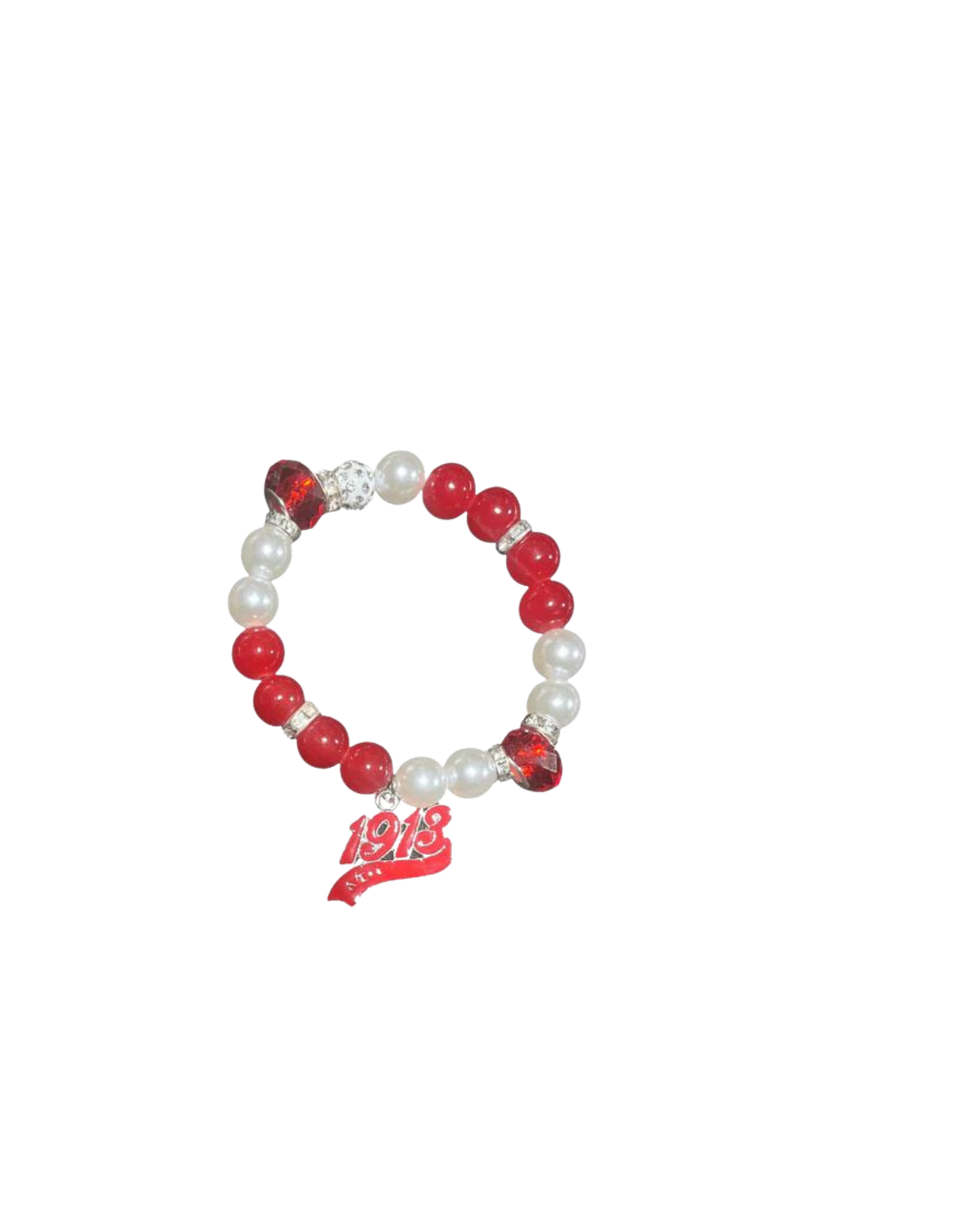 1913 Red bead and Ivory Pearl Stretch Bracelet
