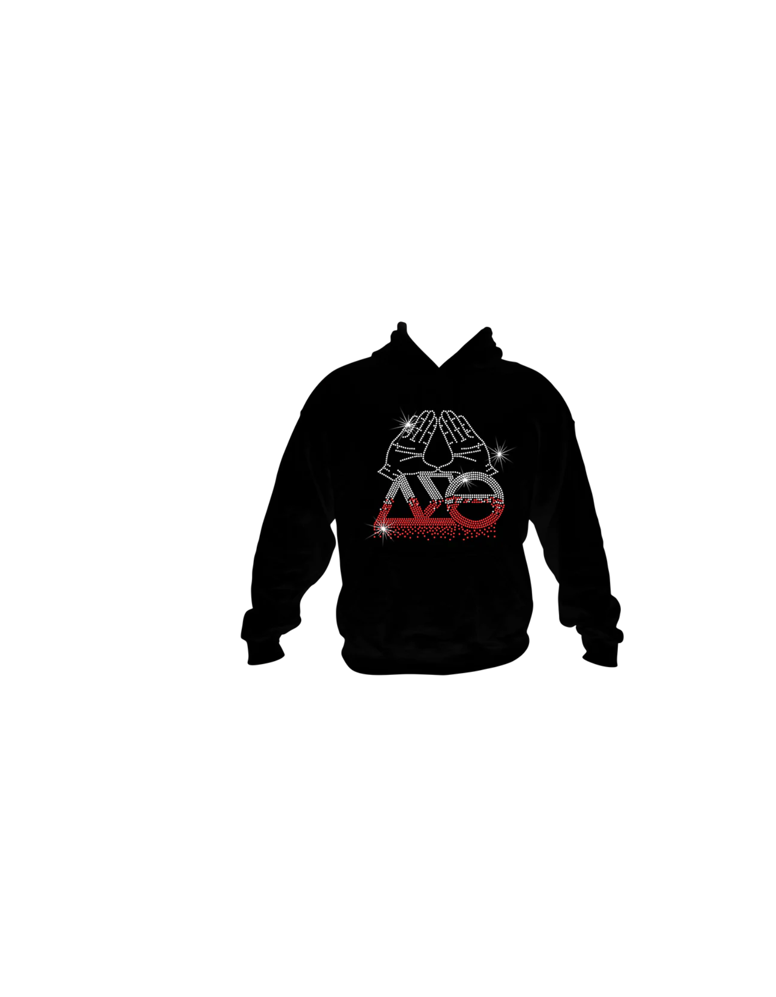 Create a bold statement with this Blinged Hoodie with the Mids held up high! This stylish hoodie features shimmering Greek Delta Sigma Theta symbols, so you can stand out while showing your pride. So, show off your style and show your support in one stylish statement.