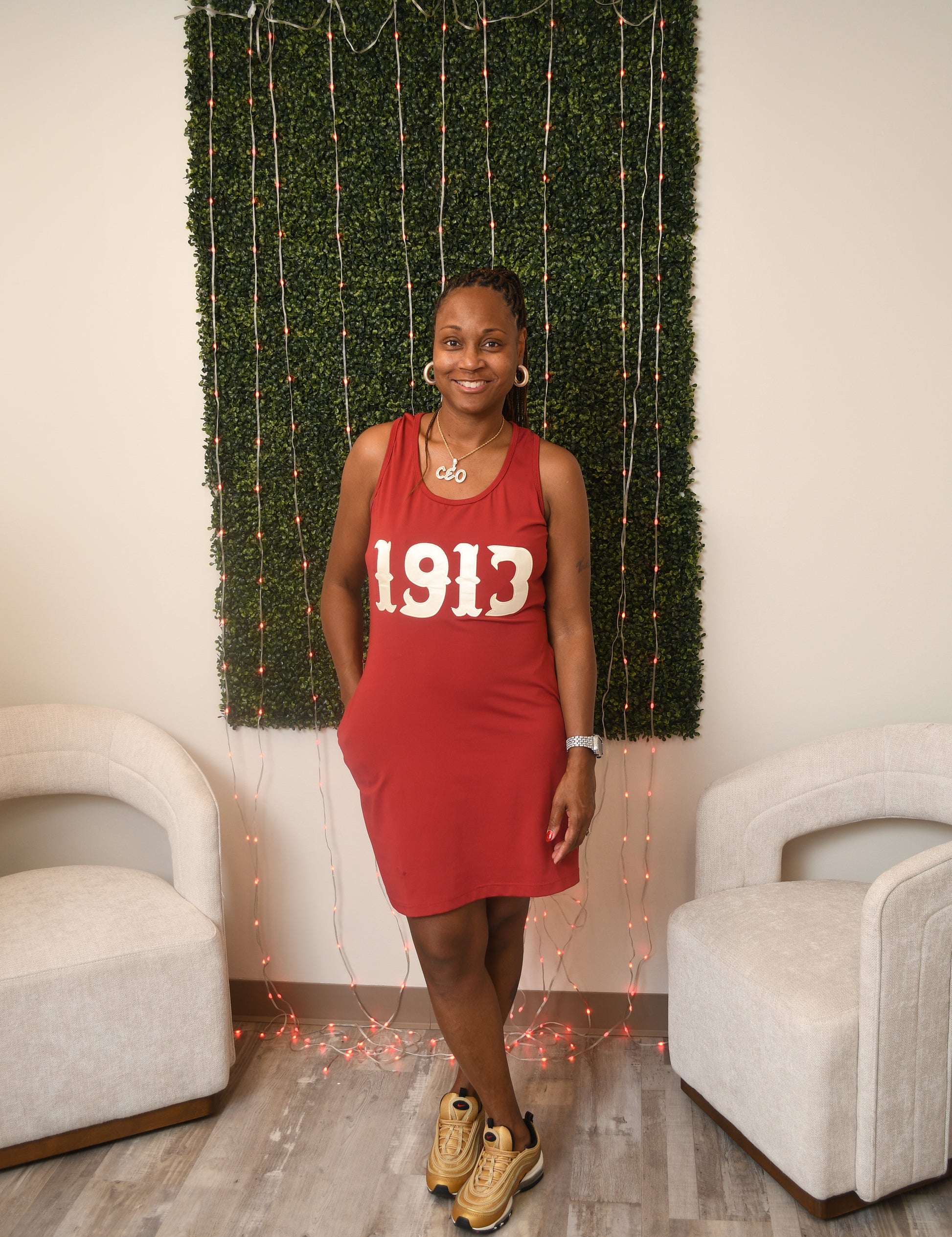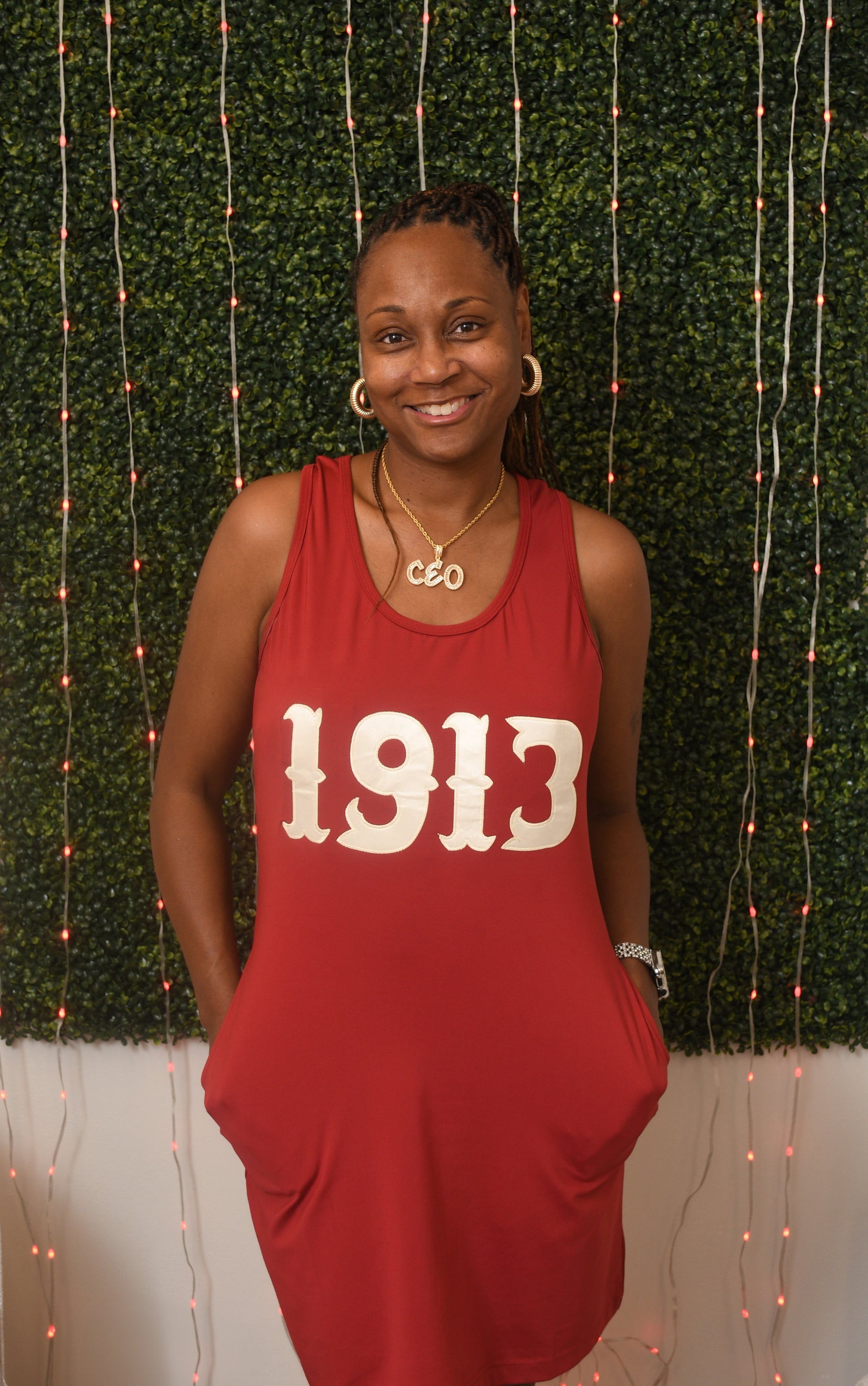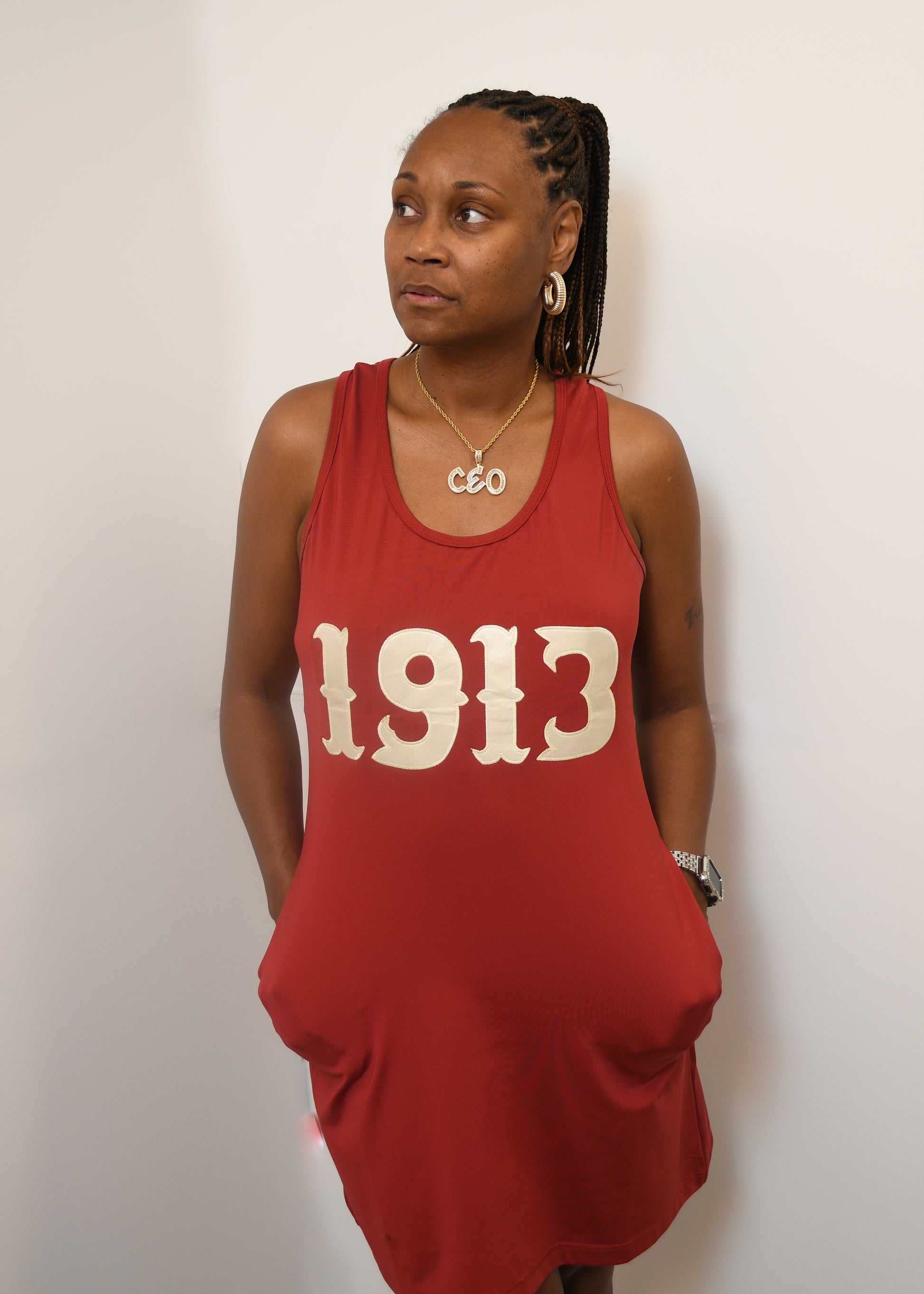 racer back tank dress with pockets and mid on the back The perfect combination of fashion and function, the Crimson & Cream 1913 racer back tank dress is designed with a flattering silhouette and convenient pockets. It's a versatile piece that goes from day to night with ease, making you feel sophisticated and stylish at every occasion.
