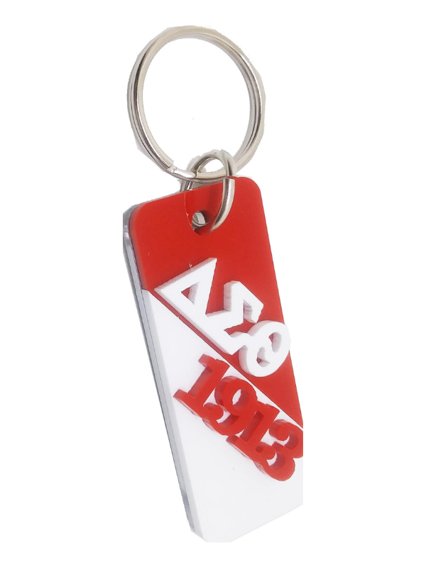 Keep a piece of your beloved sorority history with you everywhere you go with the Delta Sigma Theta 1913 Split Mirror Keychain. Show off your pride with the 1913 design and the split mirror for a unique twist. A perfect gift for any Delta Sigma Theta member.