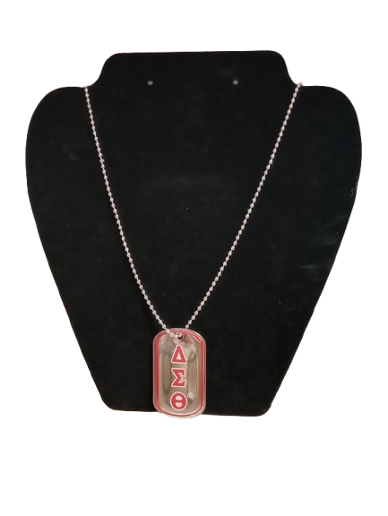 Dog Tag with Sorority Crest & letters on front with 3 vertical letters on opposite side.