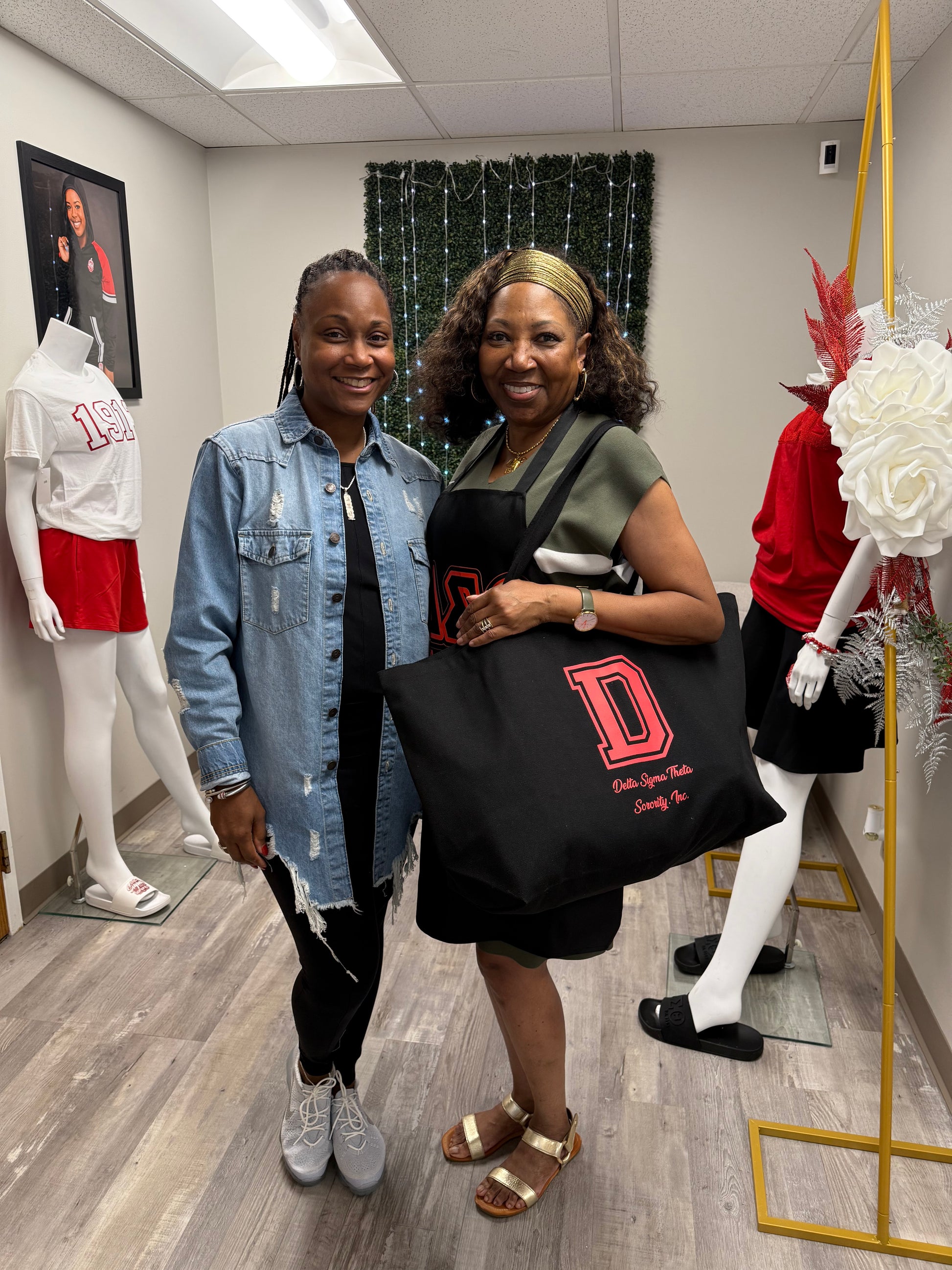 🔺 Design: Classic black tote with a bold Delta Sigma Theta emblem on both sides
