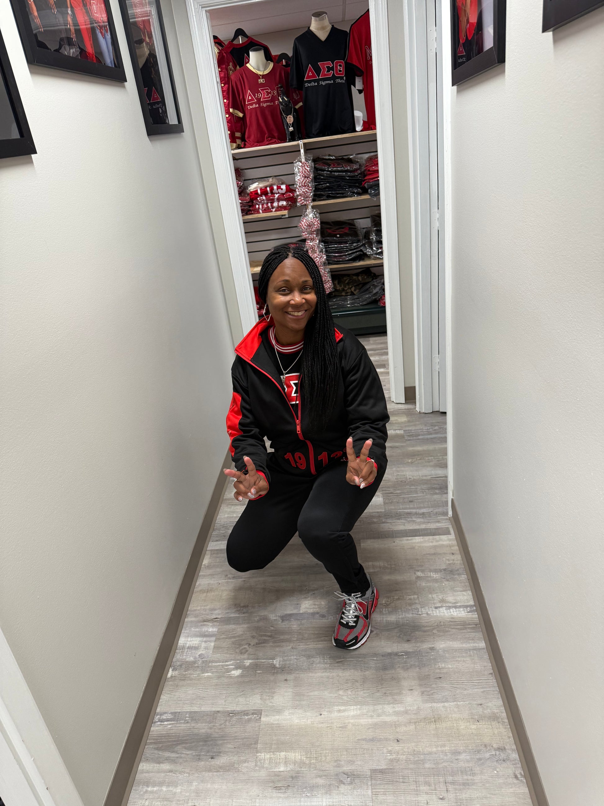 Embrace heritage, pride, and strength with the Delta Sigma Theta 1913 Elite Tracksuit. This distinguished set commemorates the founding year of Delta Sigma Theta Sorority, Inc. through striking vertical “1913” accents and a finely embroidered crest on the chest. Crafted for both elegance and ease, the zip-up jacket and matching joggers feature premium stitching, breathable materials, and a tailored fit that moves with you. Ideal for traveling, campus life, or special events, this tracksuit is more than clothing—it is a celebration of sisterhood, scholarship, and service. • Premium poly-cotton blend ensures lasting comfort • Embroidered crest and torch detail • Vertical “1913” design marks a proud legacy • Matching joggers with elastic waistband and tapered ankles • Available in sizes S–2XL • Limited stock, restock not guaranteed