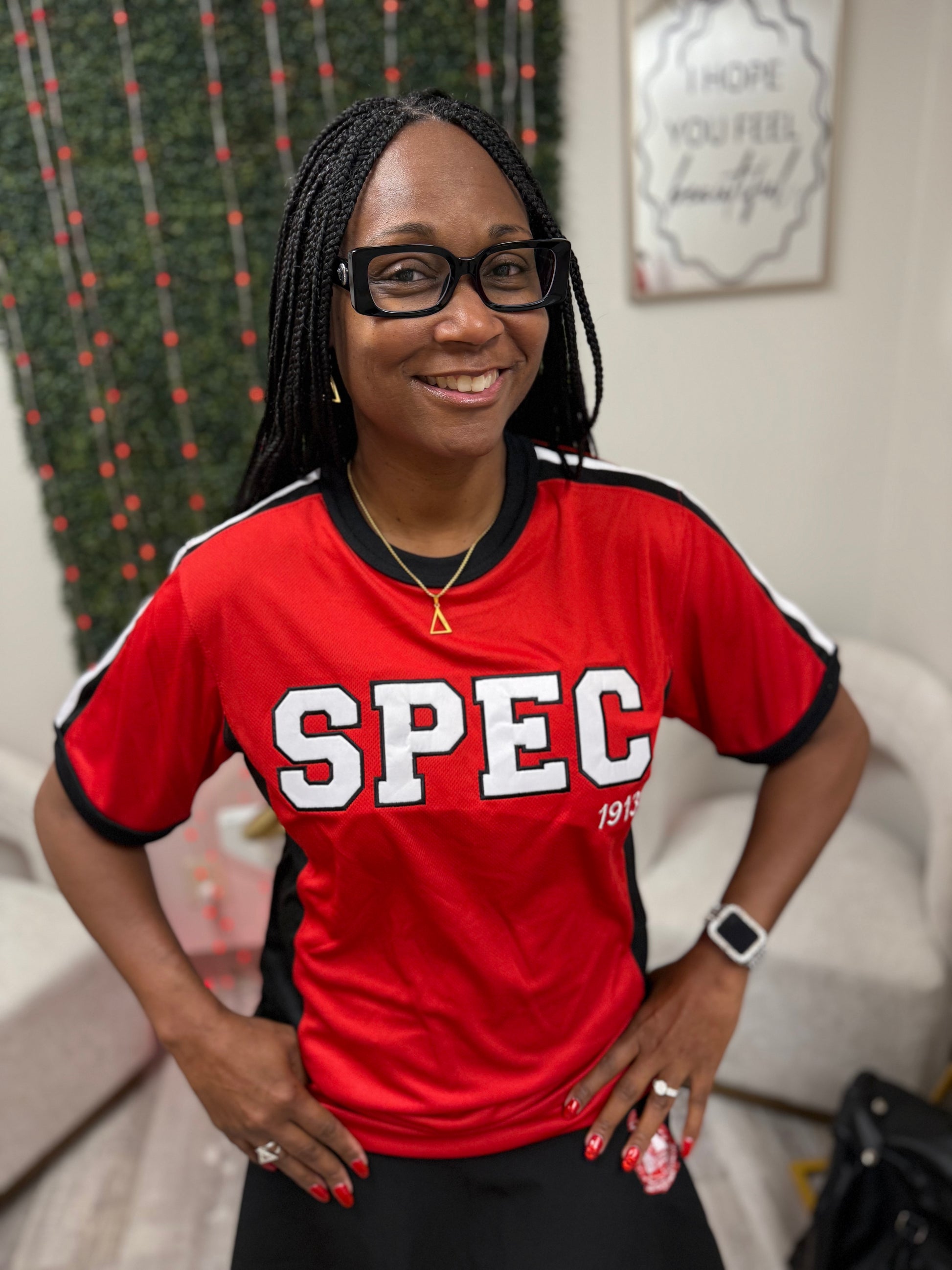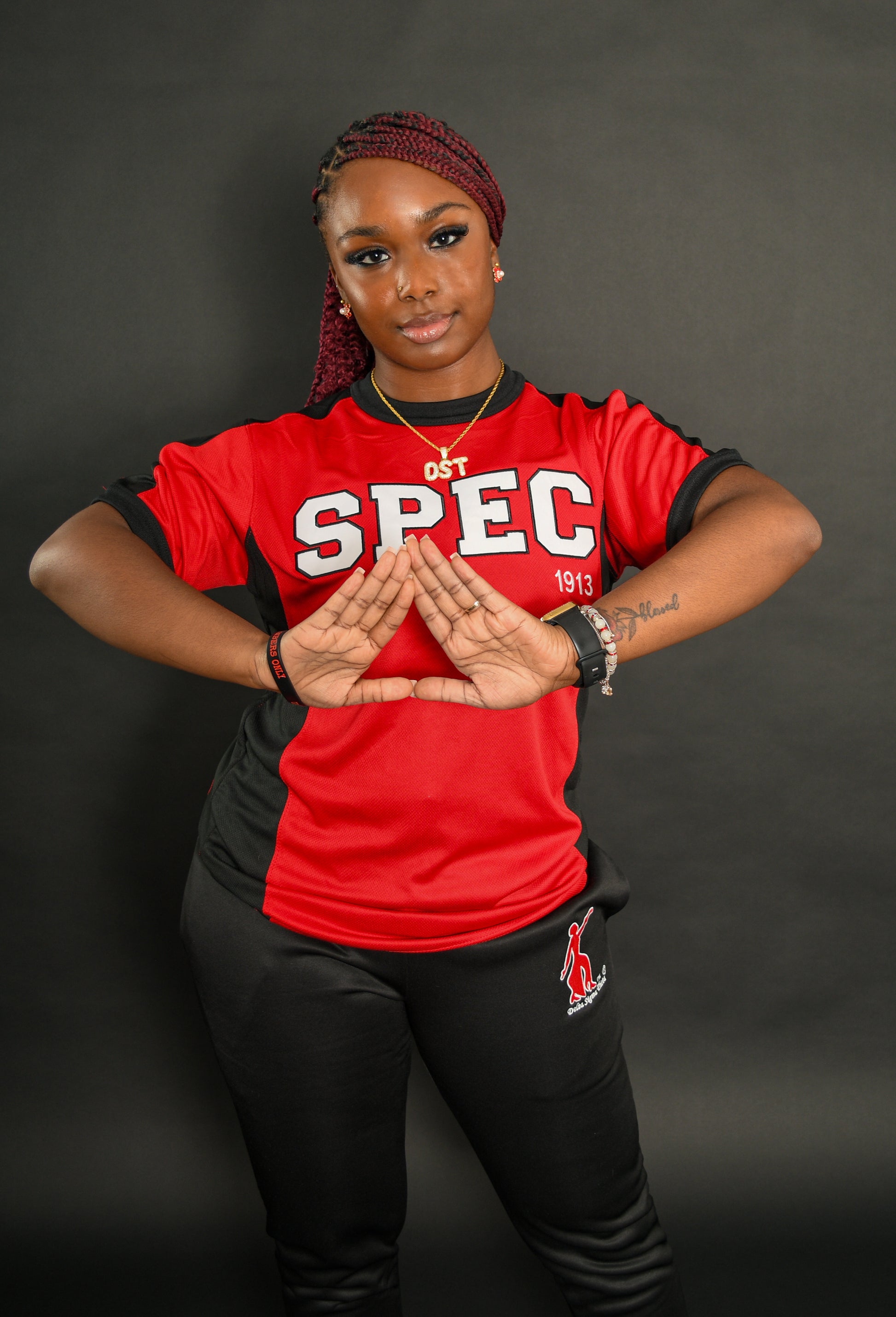 This moisture-wicking SPEC 1913 Ringer tee will definitely make a statement! Perfect for any occasion, this luxurious crew neck unisex shirt boasts a breathable micro mesh fabric. Its full-frontal embroidery/applique is a must-have for all Delta Sigma Theta Special Sorors. Comfort and elegance collide in this showstopper that is sure to turn heads!