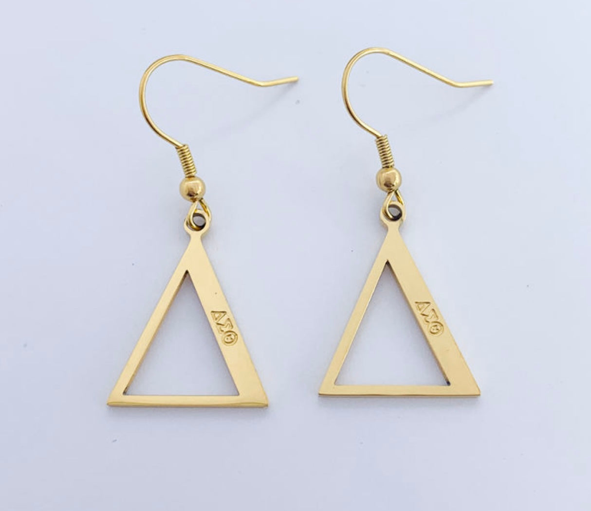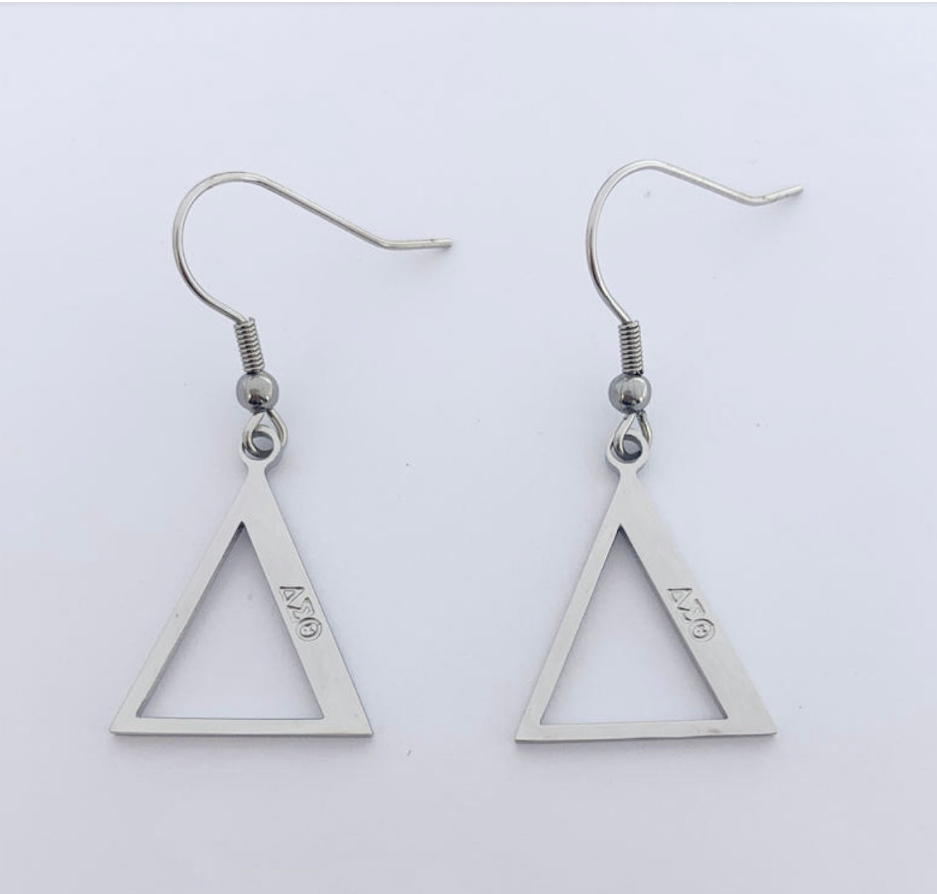 Stainless Steel Geometric Triangle earrings with engraved DST symbols