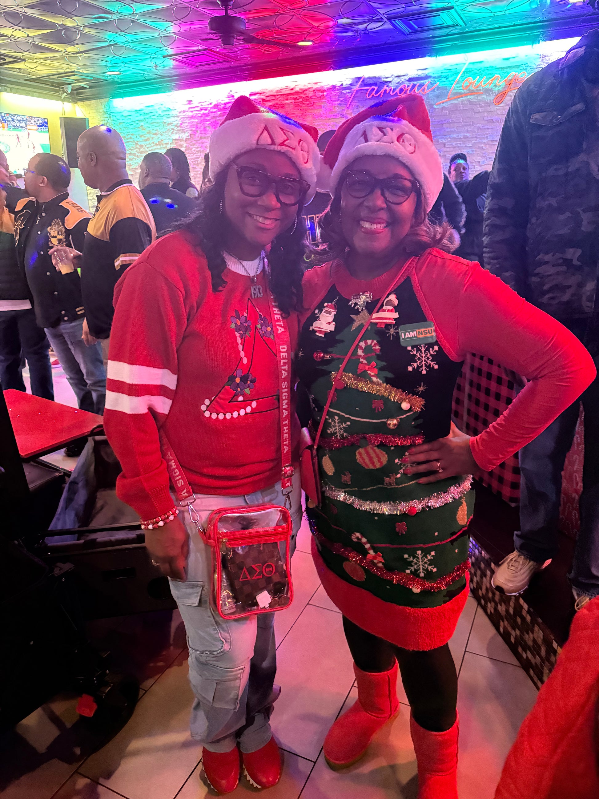 Celebrate the holidays in style with our Santa hat adorned with embroidered DST symbols. Made with high-quality material, this festive accessory is perfect for showing off your sorority pride. With a comfortable fit and eye-catching design, it's a must-have addition to your holiday wardrobe.