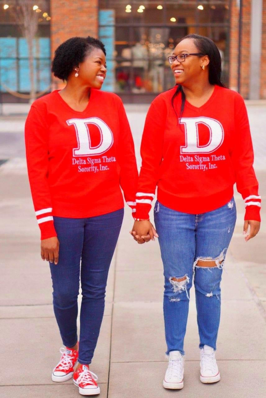 Indulge in the ultimate comfort and style with the Red Varsity Chenille Women's V-Neck Sweater, adorned with the Delta Sigma Theta Sorority Inc. embroidery. This timeless classic adds a touch of elegance to any wardrobe and can be dressed up or down. Order now to proudly showcase your Sorority Pride! Women’s fit very roomy!